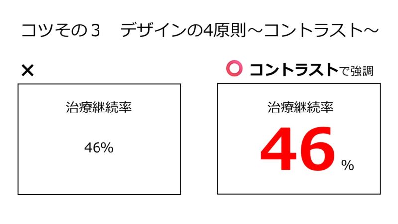 コントラスト 重要情報は太文字、色文字、大きさで極端に強調する