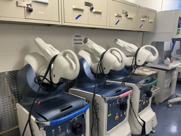 手術室の一角になる MAKO Parking。ここにずらっと並ぶ。総額いくらよ。