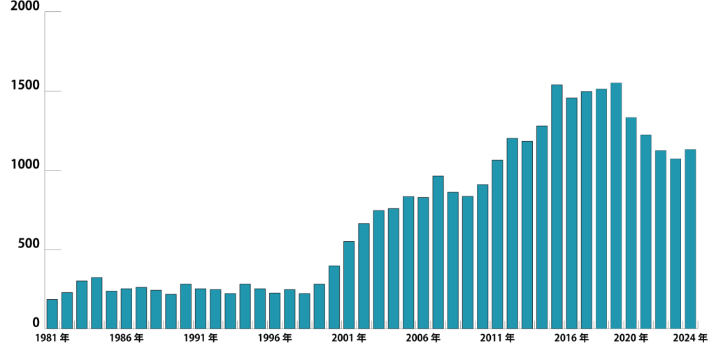 2010年馬渡正明教授が赴任され、関節外科以外の上肢や脊椎の手術数も増加し、当科の手術総数は年間1500例前後となっています。(図1、図2)