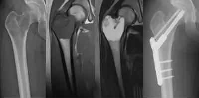 [20代 右大腿骨近位部腫瘍] 良性骨腫瘍に対して腫瘍掻把+内固定術施行。