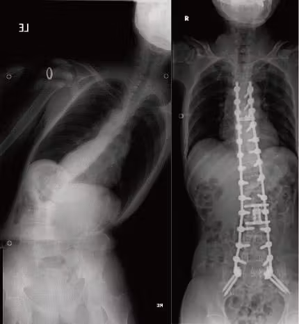 69歳女性 パーキンソン病に合併した脊柱後側弯変形に対する脊椎脊椎(前方後方)固定術